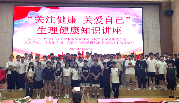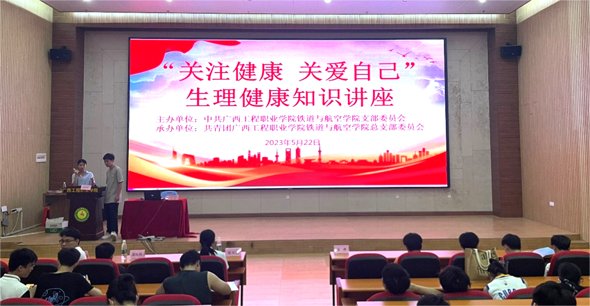 為增強廣大學(xué)生對青春期生理知識的了解,加強青春期生理健康教育,增強防范和自我保護意識,提高學(xué)生健康意識與水平,樹立健康生活理念。鐵道與航空學(xué)院于5月22日晚在圖文信息大樓一樓學(xué)術(shù)報告廳和圖文信息大樓五樓學(xué)術(shù)報告廳同時開展“關(guān)注健康,關(guān)愛自己”生理健康知識講座。本次講座由平果市婦幼保健院婦產(chǎn)科副主任醫(yī)師玉丹和平果市婦幼保健院副主任醫(yī)師覃文娟主講。鐵道與航空學(xué)院黨支部書記、院長覃鳳姣、黨支部副書記宋蓉、黨支部宣傳委員辦公室主任黃晶晶、學(xué)生科長謝小玲、輔導(dǎo)員黃家歡、莫禮偉、黃滿秋、韓姣龍、馬丹丹、及學(xué)生代表到場聆聽講座。