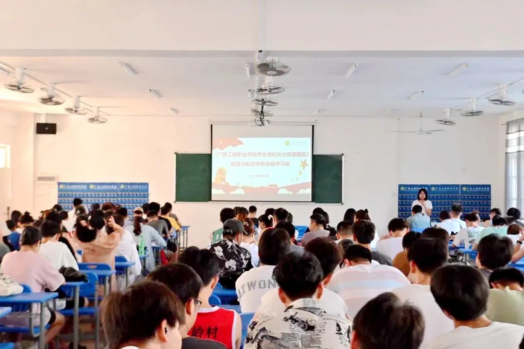 為進(jìn)一步提高同學(xué)們的紀(jì)律意識(shí),促進(jìn)同學(xué)們更好地遵守校規(guī)校紀(jì),規(guī)范言行舉止,遵紀(jì)守法,弘揚(yáng)正氣,知行統(tǒng)一,教育和引導(dǎo)學(xué)生實(shí)行自我管理、自我服務(wù)、自我教育、自我監(jiān)督,6月11日下午,鐵道與航空學(xué)院在經(jīng)管樓102教室和202教室開展《廣西工程職業(yè)學(xué)院學(xué)生違紀(jì)處分管理規(guī)定》(修訂)主題教育學(xué)習(xí)會(huì),學(xué)習(xí)會(huì)由鐵道與航空學(xué)院黨支部副書記宋蓉、分團(tuán)委書記謝小玲主講,學(xué)院2021級(jí)、2022級(jí)全體學(xué)生參加此次學(xué)習(xí)。