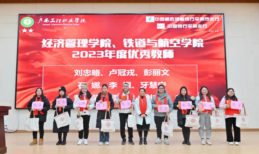 緊接著,鐵道與航空學(xué)院副書記宋蓉宣讀優(yōu)秀輔導(dǎo)員名單,經(jīng)濟(jì)管理學(xué)院副書記潘翠萍宣讀優(yōu)秀教師名單,經(jīng)濟(jì)管理學(xué)院黨支部書記、院長龐英連為優(yōu)秀教師頒發(fā)榮譽(yù)證書,鐵道與航空學(xué)院黨支部書記、副院長廖嬌為優(yōu)秀輔導(dǎo)員頒發(fā)榮譽(yù)證書,副校長、紀(jì)委書記彭高彬?yàn)?023年新入職教師頒發(fā)紀(jì)念品,并希望獲得表彰的先進(jìn)個人謙虛謹(jǐn)慎、戒驕戒躁,爭取取得更優(yōu)異的成績;號召學(xué)院教師以獲獎的個人為榜樣,奮勇爭先,扎實(shí)工作,推動學(xué)院的新發(fā)展和實(shí)現(xiàn)學(xué)校的宏偉藍(lán)圖而努力奮斗。