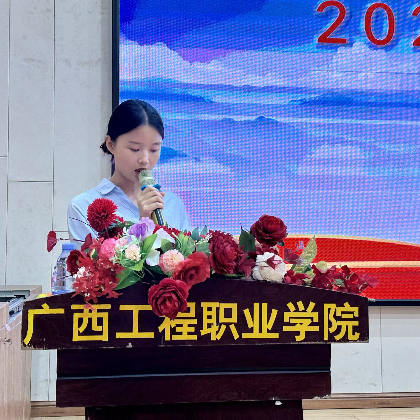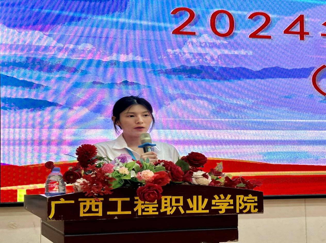 分團(tuán)委書記謝小玲宣讀廣西工程職業(yè)學(xué)院鐵道與航空學(xué)院2024年學(xué)生代表大會(huì)總監(jiān)票人、監(jiān)票人、總計(jì)票人、計(jì)票人名單