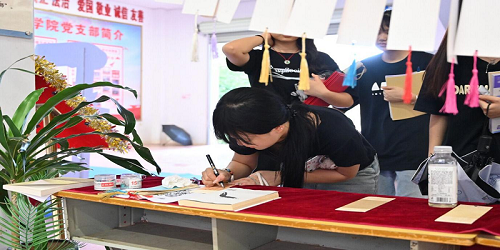 同時,學院教師、學生通過手寫賀卡形式祝福畢業(yè)生,在賀卡上留下鼓勵、期待和祝福的話語,望祝福賀卡能讓同學們記住大學里點點滴滴的美好,更加珍惜大學四年的師生情誼。