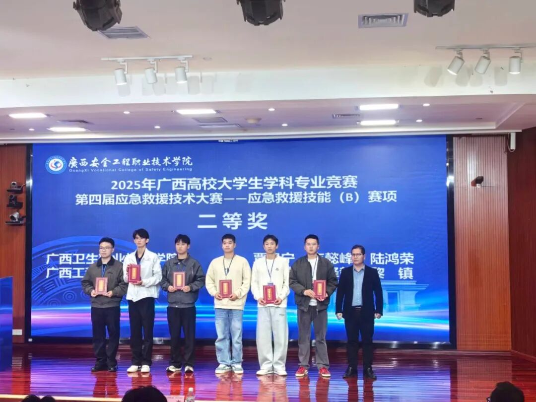 近日,由自治區(qū)教育廳、自治區(qū)應急管理廳指導,廣西安全工程職業(yè)技術(shù)學院等單位承辦的2025年廣西高校大學生學科專業(yè)競賽第四屆應急救援技術(shù)大賽圓滿落幕。我院組織2支隊伍參加應急救援技能(B)賽項。最終,在來自全區(qū)9所高職院校的12支代表隊激烈角逐中,由黎鎮(zhèn)、韋澤龍、樊仲愷三名同學組成的代表隊脫穎而出,他們憑借扎實的專業(yè)功底和出色的應急處置能力,斬獲該賽項二等獎。