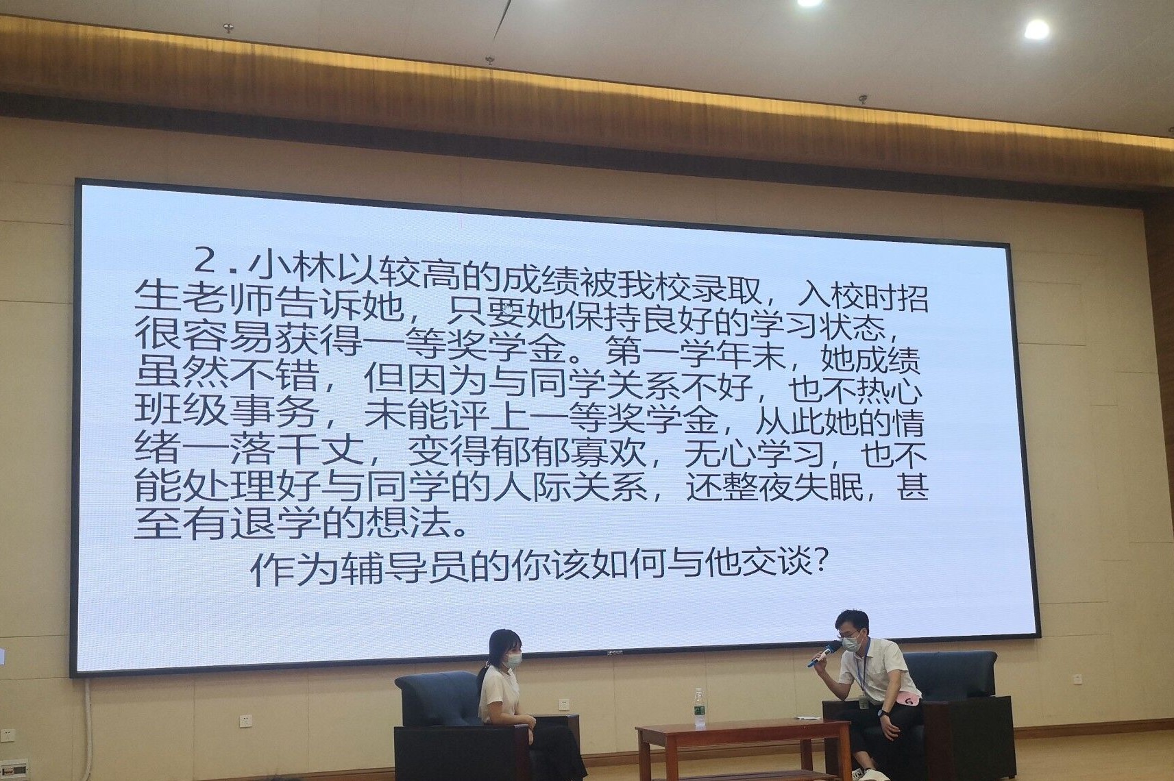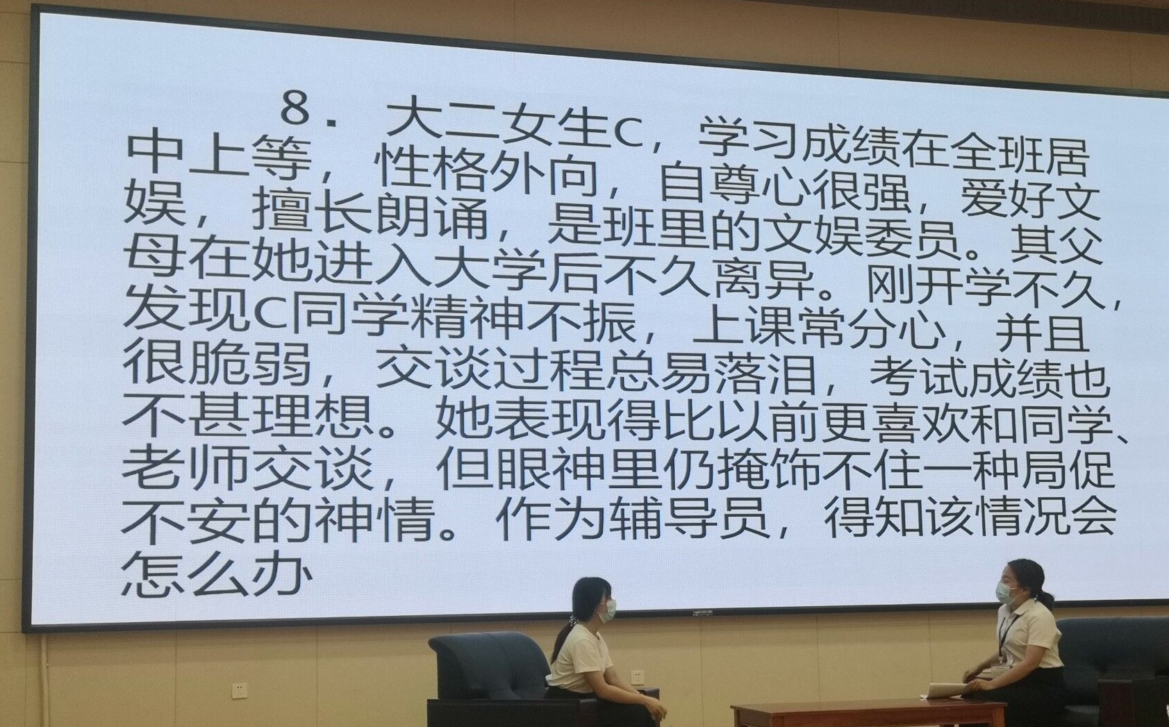 本屆大賽由學生工作處組織開展,大賽分為“基礎(chǔ)知識測試”、“談心談話”、“案例研討”三個環(huán)節(jié)。4月8日下午,進行“基礎(chǔ)知識測試”環(huán)節(jié),此環(huán)節(jié)采用閉卷作答方式進行,限時90分鐘,重點考察輔導員的理論素養(yǎng)和業(yè)務知識,全方位考核輔導員業(yè)務基本功。4月9日,分別進行“談心談話”、“案例研討”賽項。