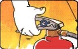 第四步“噴”。往下按壓閥,對準火焰根部噴射。