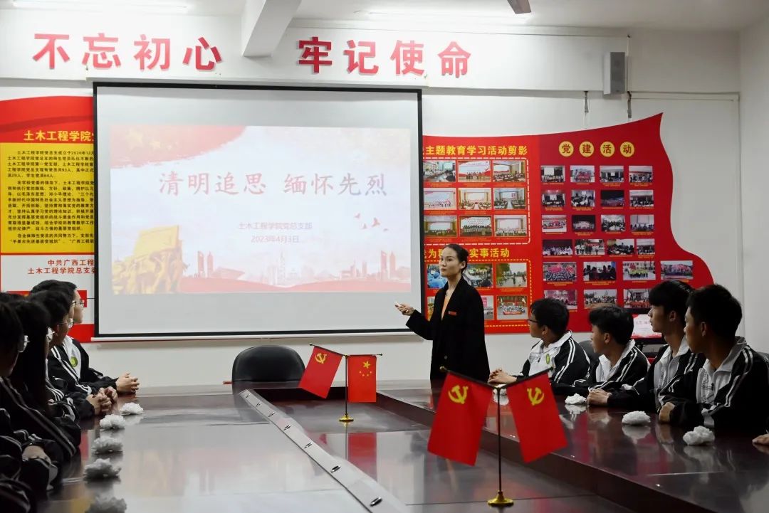 2023年4月3日晚上8點(diǎn),土木工程學(xué)院黨總支部在學(xué)院301黨員活動(dòng)室組織開展了以“清明追思,緬懷先烈”為主題的緬懷活動(dòng),土木工程學(xué)院各團(tuán)支部書記參加了活動(dòng),土木工程學(xué)院黨總支部副書記朱海玲主持活動(dòng)。