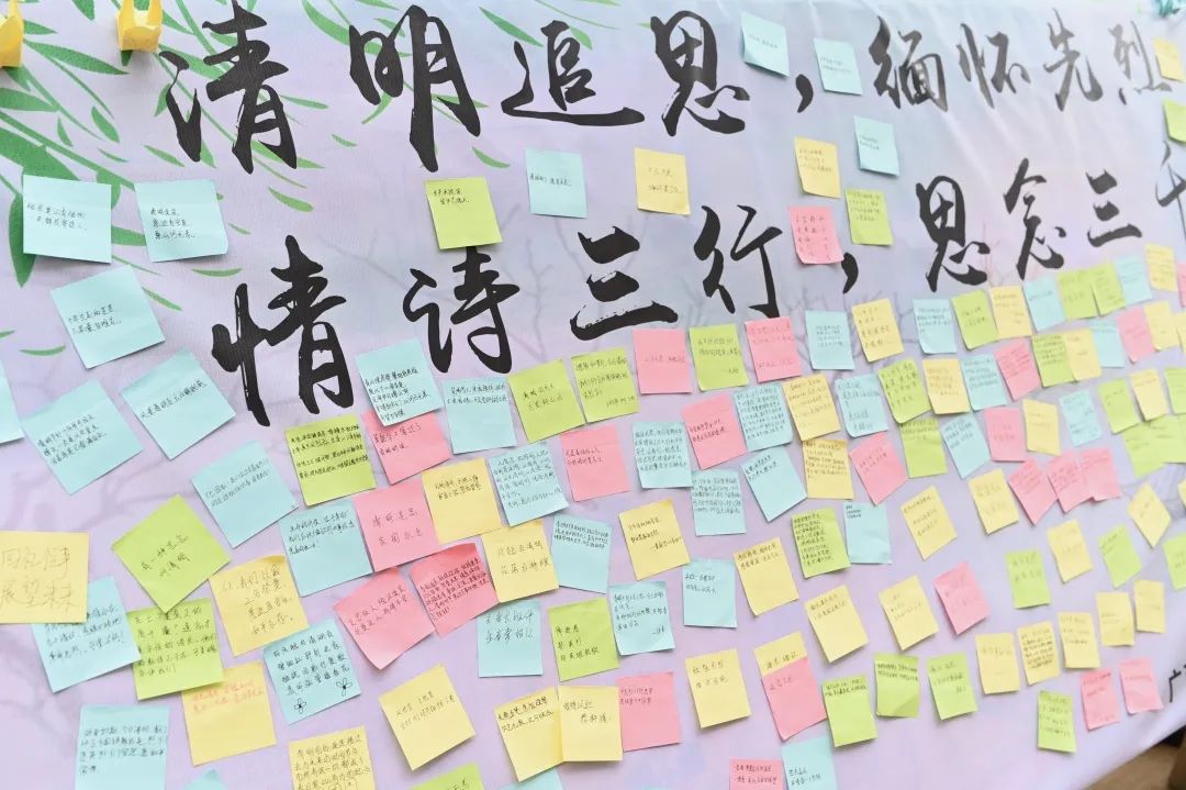 活動(dòng)中,同學(xué)們態(tài)度積極,踴躍參加,在便簽上書寫寄語(yǔ),歌頌先烈事跡,緬懷革命先烈。除此之外,同學(xué)們還在便簽上用文字表達(dá)認(rèn)知、尊重、繼承和弘揚(yáng)傳統(tǒng)文化的感受和體會(huì),抒發(fā)繼承先烈遺志、立志報(bào)效祖國(guó)的志向和情懷。期間,老師們也積極參與到活動(dòng)中來(lái),表達(dá)對(duì)革命先烈的敬仰和哀思,進(jìn)一步增強(qiáng)了為黨育人、為國(guó)育才的責(zé)任感和使命感,為培養(yǎng)擔(dān)當(dāng)民族復(fù)興大任的時(shí)代新人而努力奮斗。
