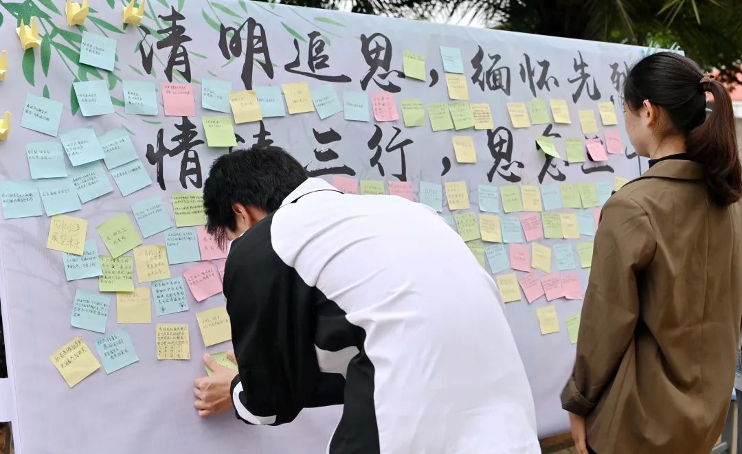 2023年4月2日,土木工程學(xué)院黨總支部在學(xué)院一樓開展“清明追思,緬懷先烈”主題清明節(jié)簽名寄語(yǔ)活動(dòng),全校師生在活動(dòng)展板上以便簽寄語(yǔ)的形式,祭英烈、憶先賢,傳承紅色基因。