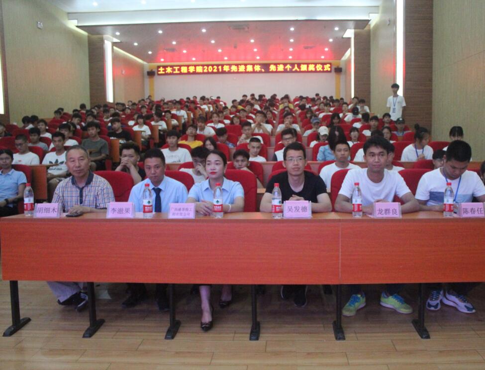 2021年6月2日,土木工程學(xué)院在圖文信息大樓一樓學(xué)術(shù)報(bào)告廳舉行2021年土木工程學(xué)院先進(jìn)集體、先進(jìn)個(gè)人頒獎(jiǎng)儀式。出席頒獎(jiǎng)儀式的有學(xué)校黨委副書記、副校長(zhǎng)胡細(xì)木、特邀嘉賓廣西盛菲煌裝飾工程公司李滋果經(jīng)理、唐艷紅女士、土木工程學(xué)院學(xué)生科科長(zhǎng)陳春任、辦公室主任黃連芳、土木工程學(xué)院第一黨支部書記龍群良以及全體教師、部分班級(jí)的學(xué)生代表參加了會(huì)議。頒獎(jiǎng)儀式由學(xué)校黨委委員、土木工程學(xué)院黨總支書記、副院長(zhǎng)主持。頒獎(jiǎng)會(huì)議在全體參會(huì)人員奏唱《國(guó)歌》中拉開序幕。