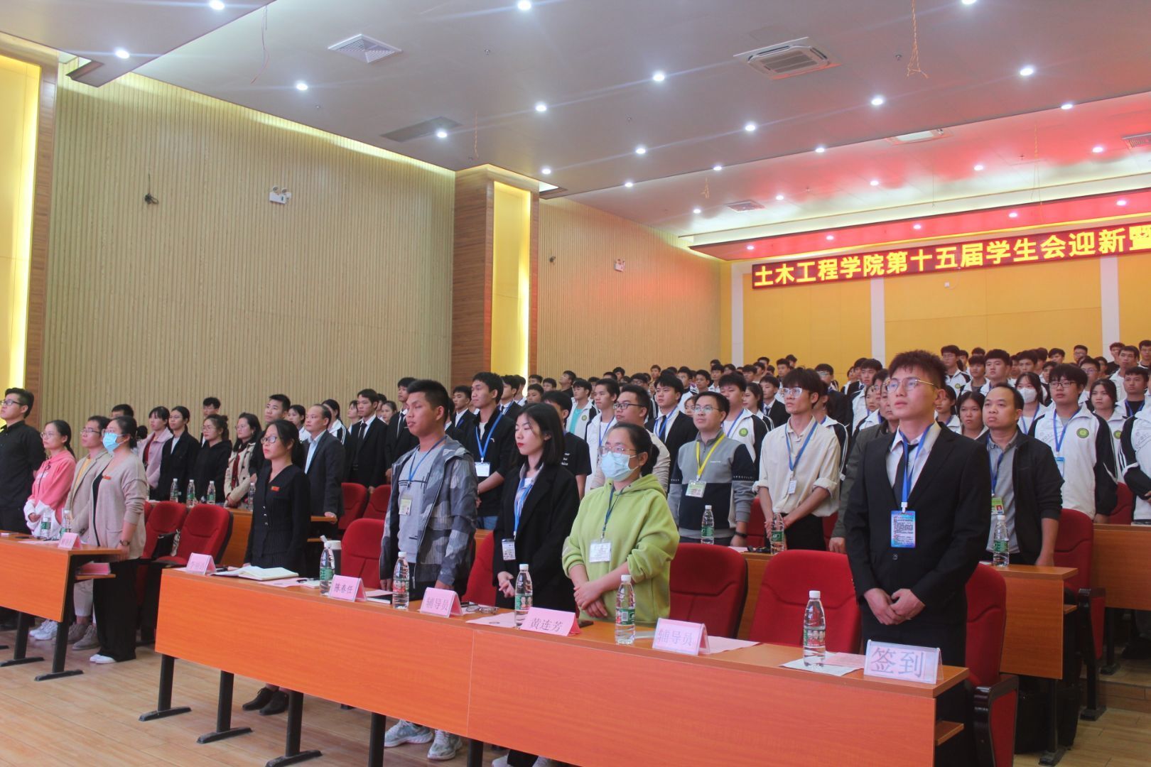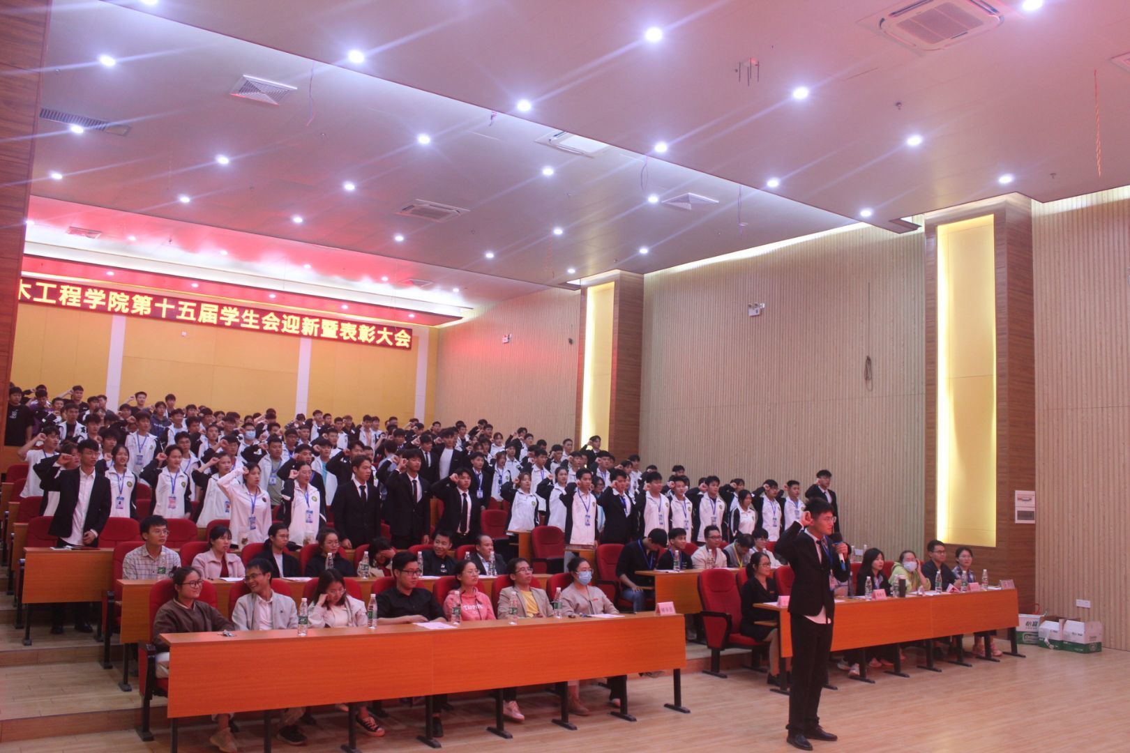 2021年10月28日晚,土木工程學(xué)院第十五屆學(xué)生會迎新暨表彰大會在圖文信息大樓三樓學(xué)術(shù)報告廳召開,出席會議的有學(xué)校黨委委員、土木工程學(xué)院黨總支書記、副院長李麗詩、土木工程學(xué)院分團委書記陳春任、辦公室主任黃連芳及全體教師、全體學(xué)生會成員、部分班級學(xué)生代表。本次會議由2021級新生陳雨歡同學(xué)主持。會議在全體參會人員奏唱《共青團團歌》中拉開序幕。