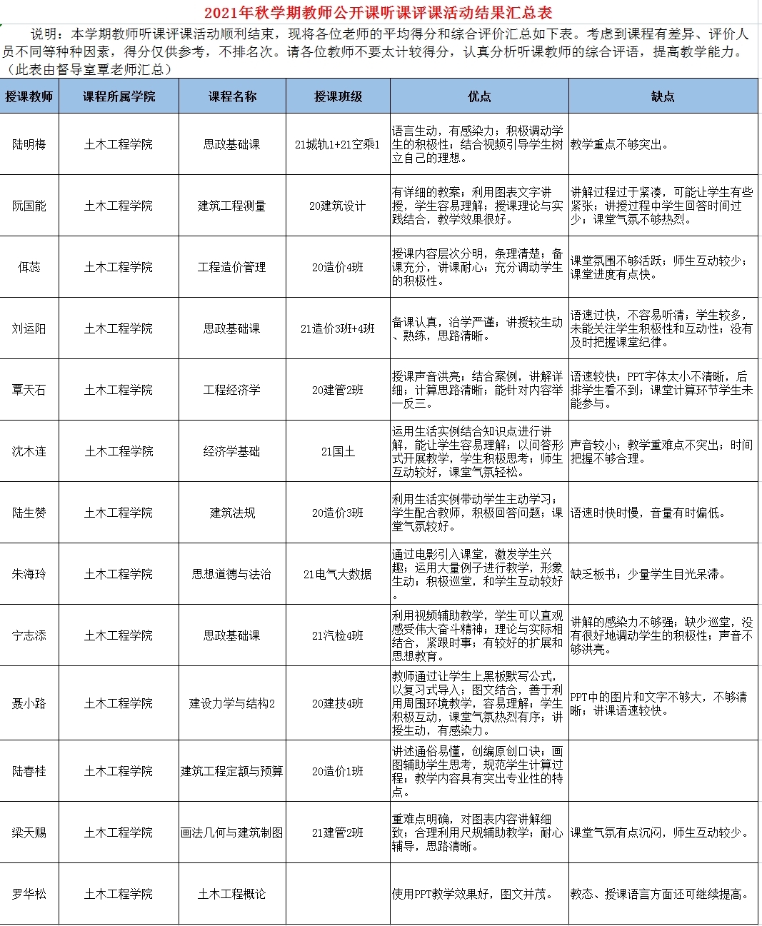 為了更好地加強(qiáng)教學(xué)常規(guī)管理,深入地了解課堂,了解教師及其教學(xué)的特色,推動(dòng)教師鉆研教材,土木工程學(xué)院教師積極參與廣西工程職業(yè)學(xué)院2021年秋學(xué)期教師聽(tīng)課評(píng)課活動(dòng)。在上課前,每位老師都能認(rèn)真研究課程標(biāo)準(zhǔn)和教學(xué)方案,積極備課,盡心設(shè)計(jì)教案,以豐富充實(shí)的教學(xué)內(nèi)容,新穎獨(dú)特的教學(xué)方法向全校教師充分展示了自己的風(fēng)采。