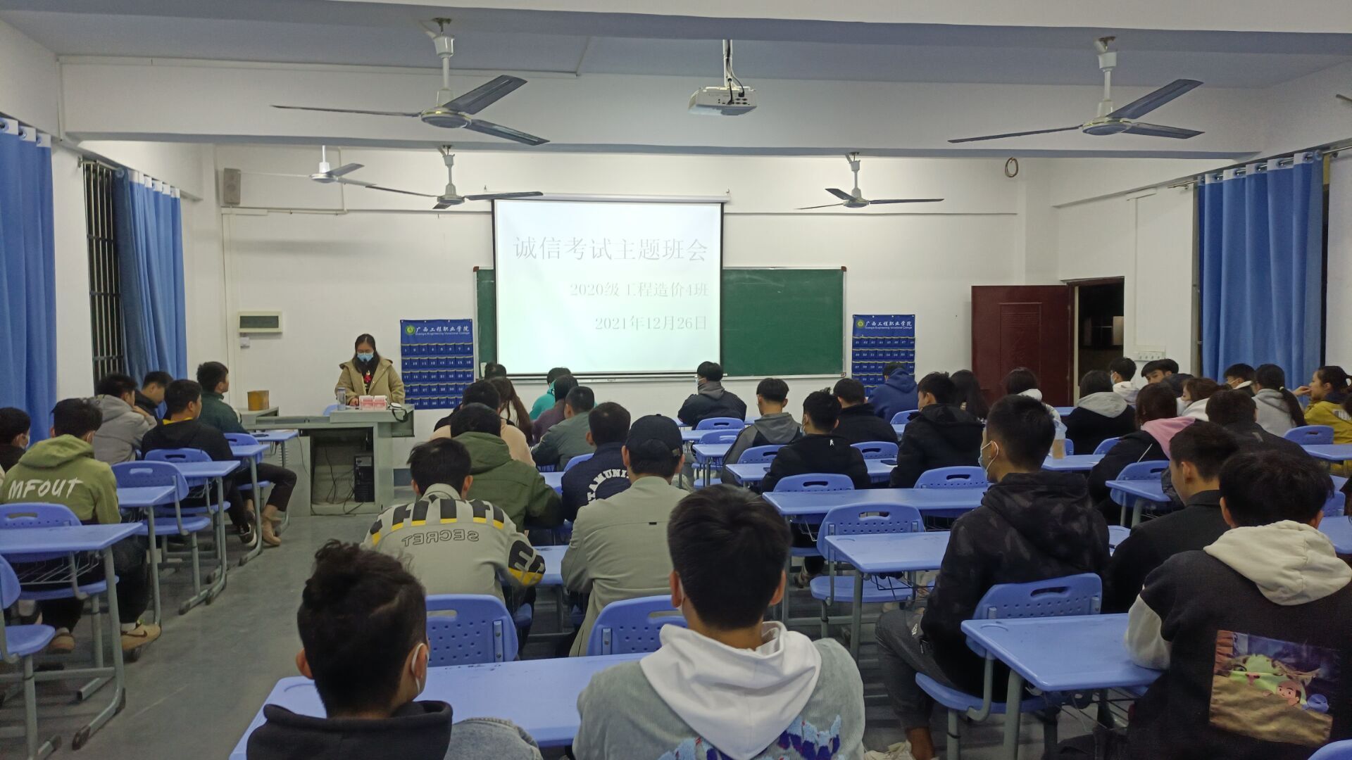 2020年12月26日,土木工程學(xué)院各專業(yè)學(xué)生在2號教學(xué)樓各班級教室開展了主題為“誠信考試”的主題班會。參加本次班會的成員為各班輔導(dǎo)員及土木工程學(xué)院全體同學(xué)。誠信考試活動的開展,在推動大學(xué)生深化誠信觀念、增強(qiáng)誠信意識、培養(yǎng)誠信品質(zhì)有著深遠(yuǎn)的意義。