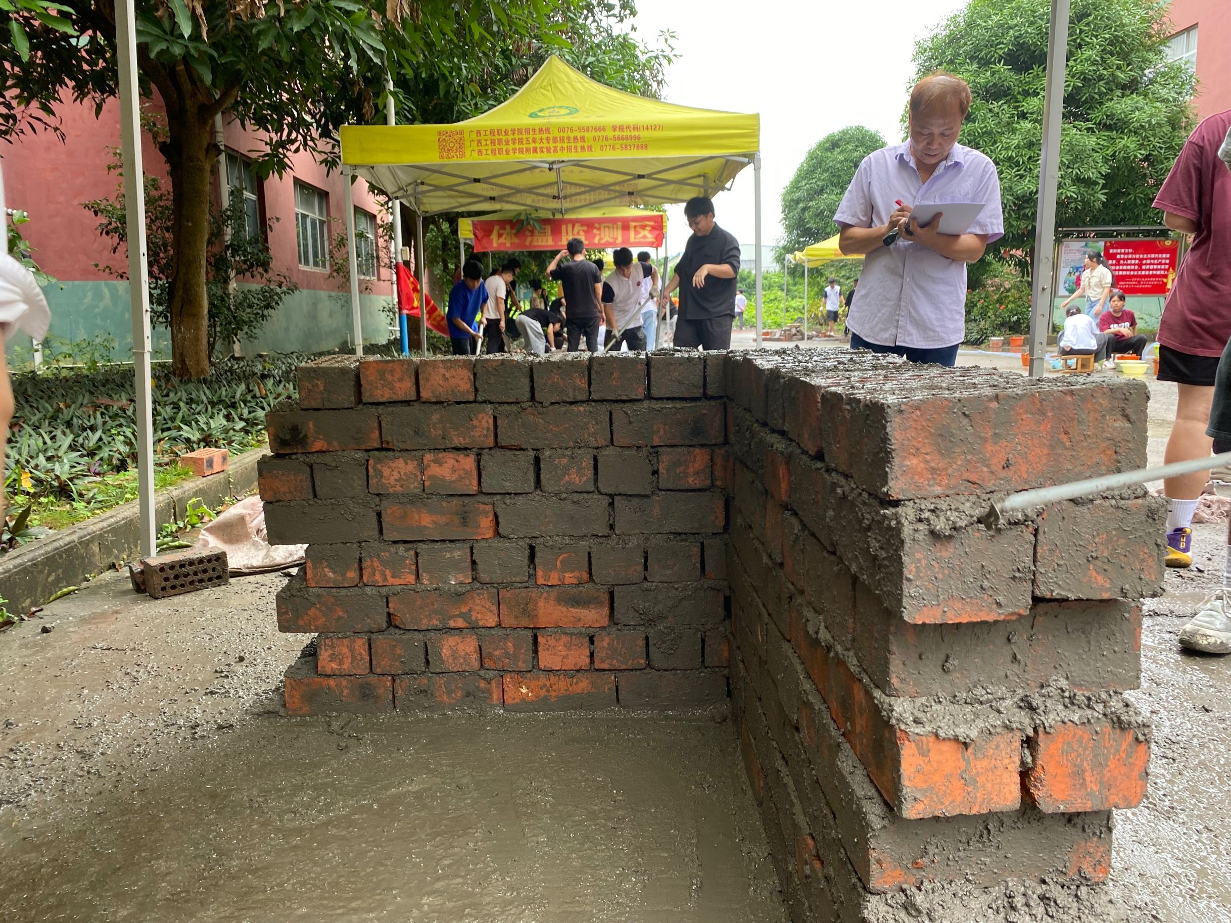 2022年6月12日星期日上午,由土木工程學(xué)院第一黨支部和土木工程學(xué)院學(xué)生會共同主辦的職業(yè)技能大賽系列活動之——砌體砌筑大賽在學(xué)院1號樓旁舉行。此次比賽主要展現(xiàn)同學(xué)們對砌體砌筑知識的理解和應(yīng)用,著力培養(yǎng)同學(xué)們的砌體砌筑興趣、砌體砌筑實踐應(yīng)用能力,學(xué)校黨委委員、校長助理蔣茂麗,土木工程學(xué)院學(xué)院副院長楊竟,土木工程學(xué)院部分教師出席此次比賽,本次比賽由龍群良、韋炳輝、黃小龍、黃照政、牙忠木等老師擔(dān)任評委。