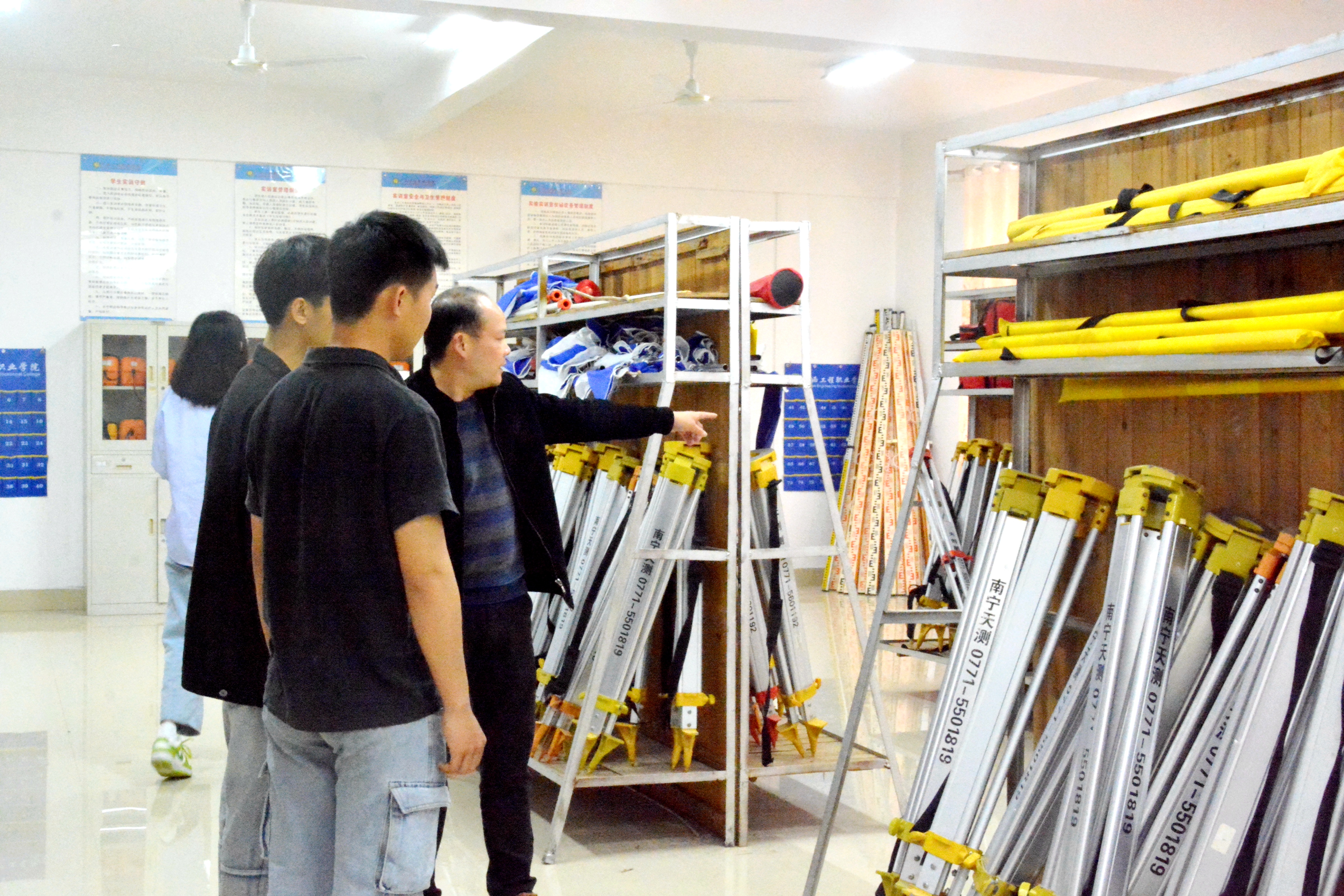 學生在阮老師帶領(lǐng)下整理測繪儀器圖