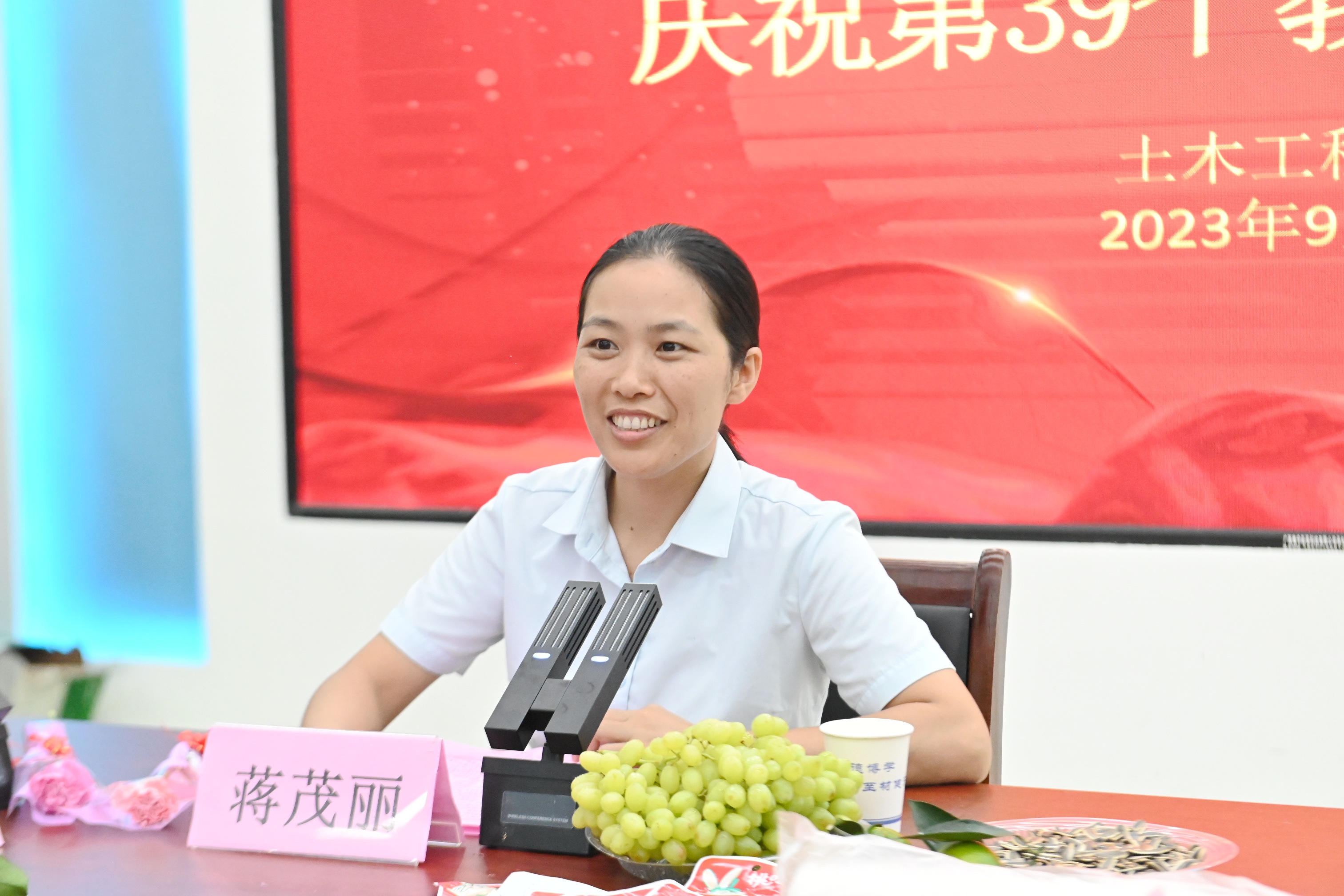 為慶祝第39個(gè)教師節(jié)到來(lái),營(yíng)造尊師重教的良好氛圍,提升教師的幸福感、成就感、榮譽(yù)感,激勵(lì)廣大教師積極投身學(xué)校建設(shè)實(shí)踐,9月10日下午16點(diǎn),土木工程學(xué)院在圖書館大數(shù)據(jù)中心會(huì)議室召開主題為“躬耕教壇,強(qiáng)國(guó)有我”教師節(jié)座談會(huì)。廣西工程職業(yè)學(xué)院副校長(zhǎng)蔣茂麗出席,由土木工程學(xué)院副院長(zhǎng)楊竟主持,土木工程學(xué)院、人力資源處、財(cái)務(wù)處全體教師參加本次座談會(huì)。