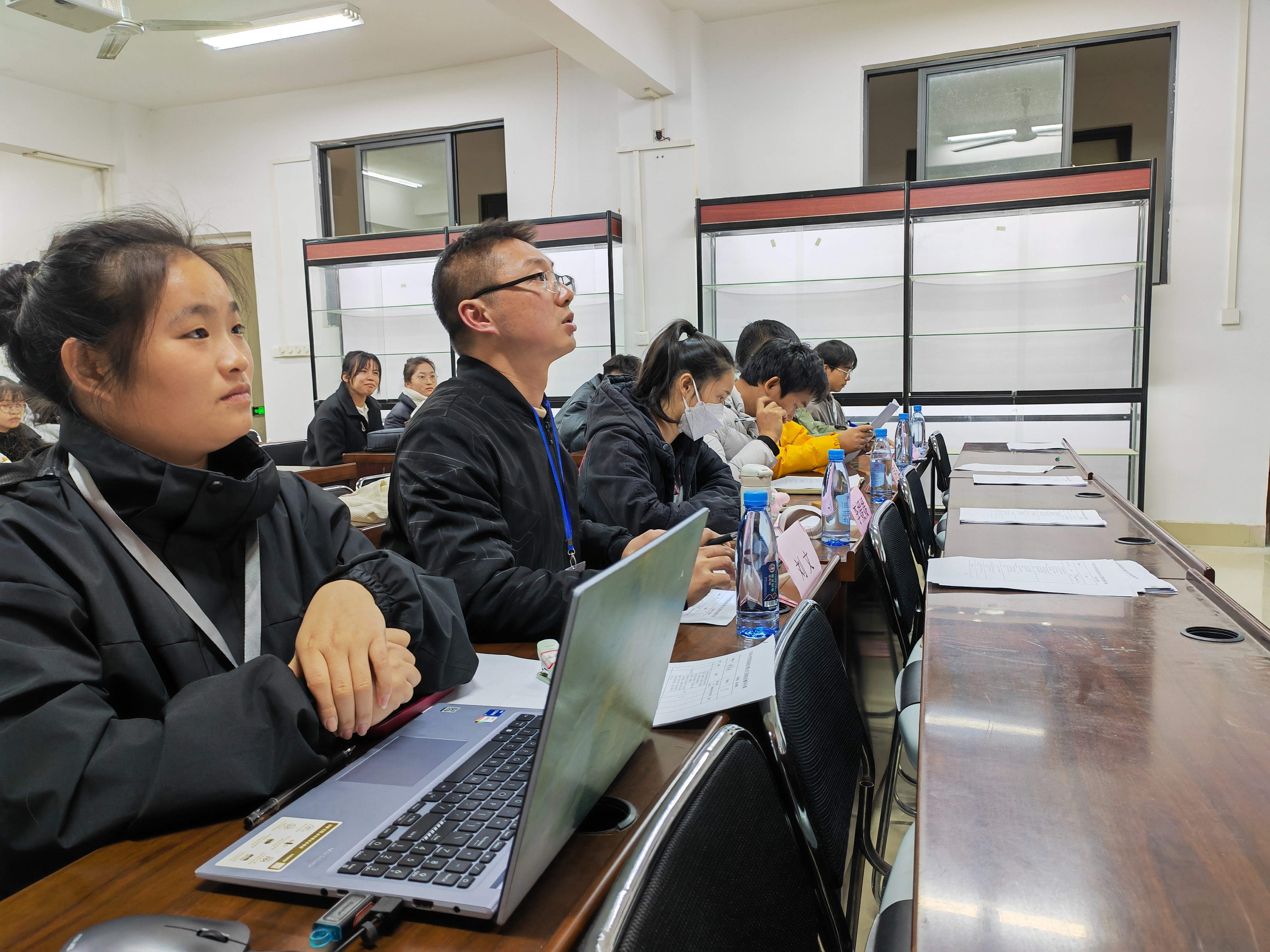 圖:評(píng)委認(rèn)真聆聽,向選手進(jìn)行提問(wèn)