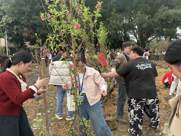 植樹結(jié)束后,全體參與人員在桃花林前合影留念,記錄下這一充滿意義的時刻。