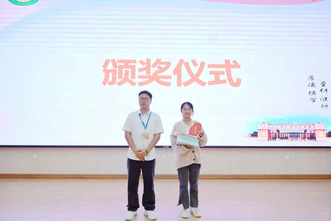 農(nóng)山老師為獲得二等獎的譚玉梅同學(xué)頒獎
