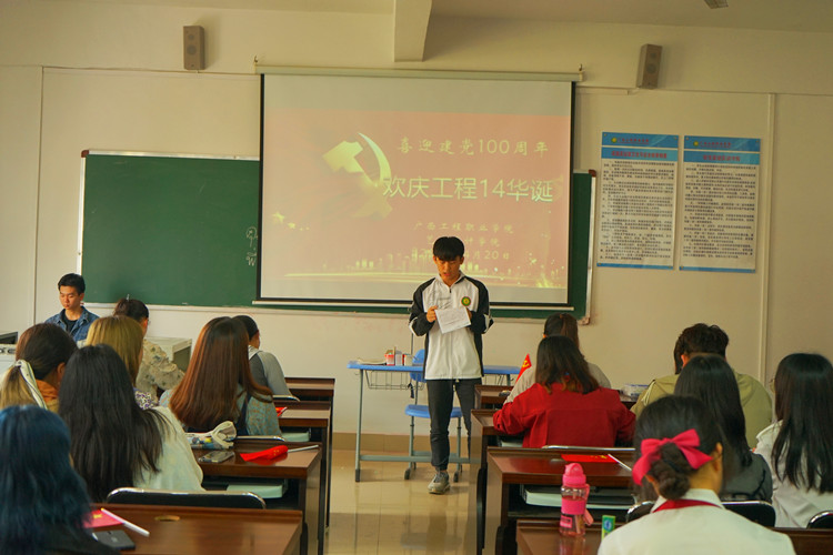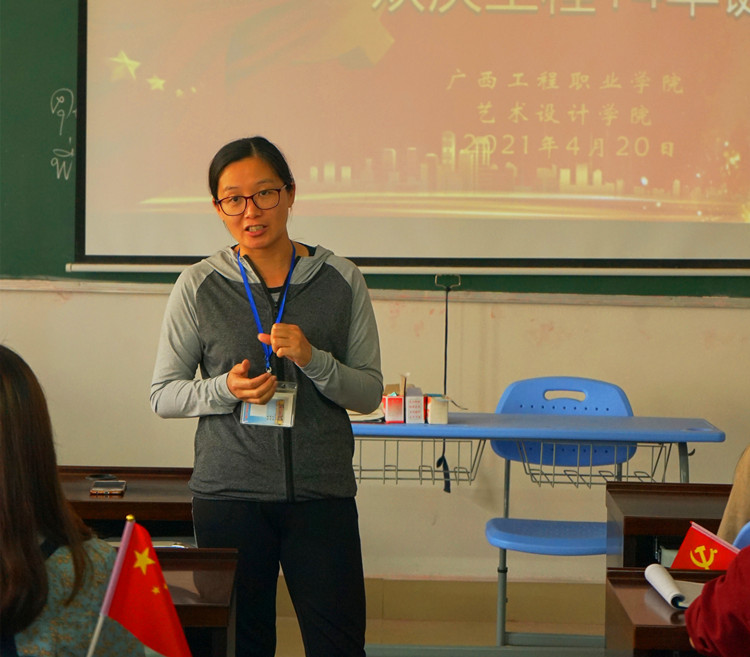 2021年4月20日下午,廣西工程職業(yè)學院藝術(shù)設計學院在設計樓402多媒體教室開展“喜迎建黨100周年,歡慶工程14華誕”主題活動,藝術(shù)設計學院黨支部書記兼副院長覃鳳姣、分團委書記兼學生科科長潘翠萍、全體輔導員、專任教師以及學生代表參加了活動,活動由藝術(shù)設計學院學生會鄭智元同學主持。