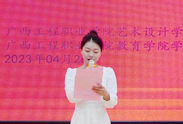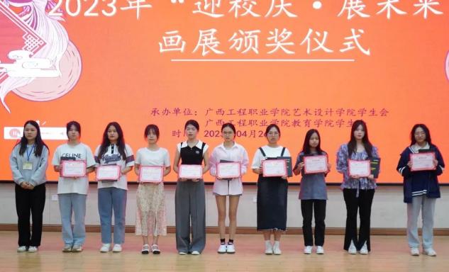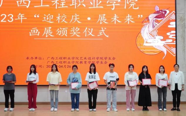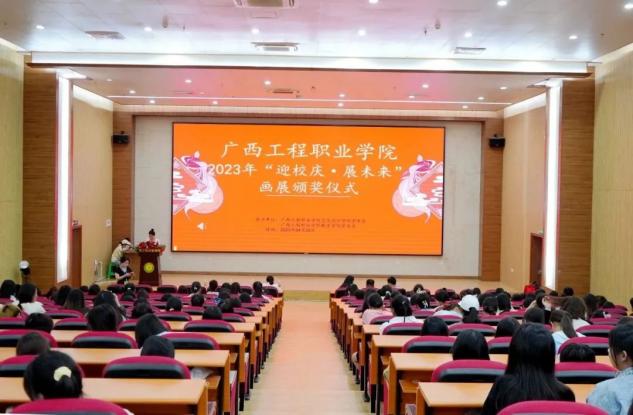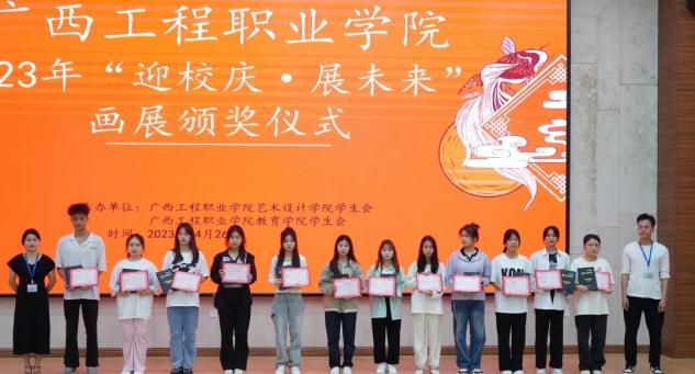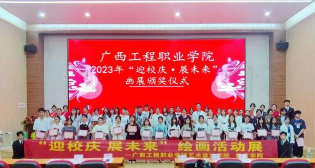 4月26日,廣西工程職業(yè)學(xué)院2023年“迎校慶·展未來”畫展頒獎儀式在圖文信息大樓報告廳舉行,學(xué)校校長助理梁善雅、藝術(shù)設(shè)計學(xué)院副院長張清泉、藝術(shù)設(shè)計學(xué)院黨支部副書記趙志輝、教育學(xué)院學(xué)生科科長李麗清、藝術(shù)設(shè)計學(xué)院學(xué)生科科長許富城等領(lǐng)導(dǎo)、老師出席頒獎儀式,藝術(shù)設(shè)計學(xué)院和教育學(xué)院師生代表出席頒獎儀式。頒獎儀式由黃敏同學(xué)主持。
