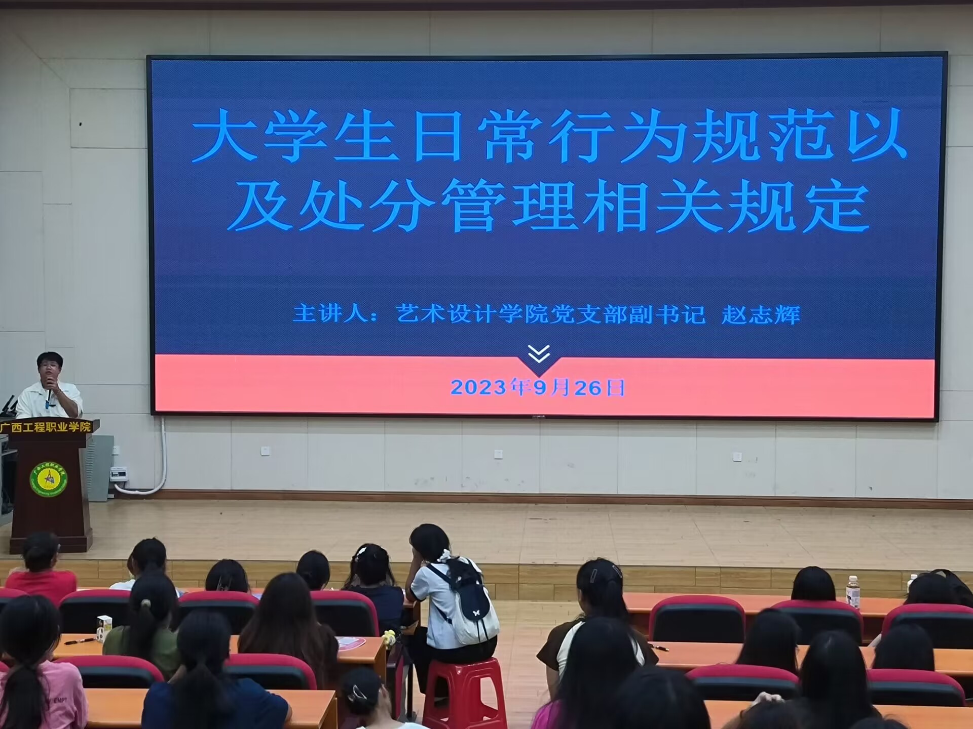 藝術(shù)設(shè)計(jì)學(xué)院開展2023級(jí)新生入學(xué)教育之“日常行為規(guī)范及處分管理相關(guān)規(guī)定解讀”專題培訓(xùn)