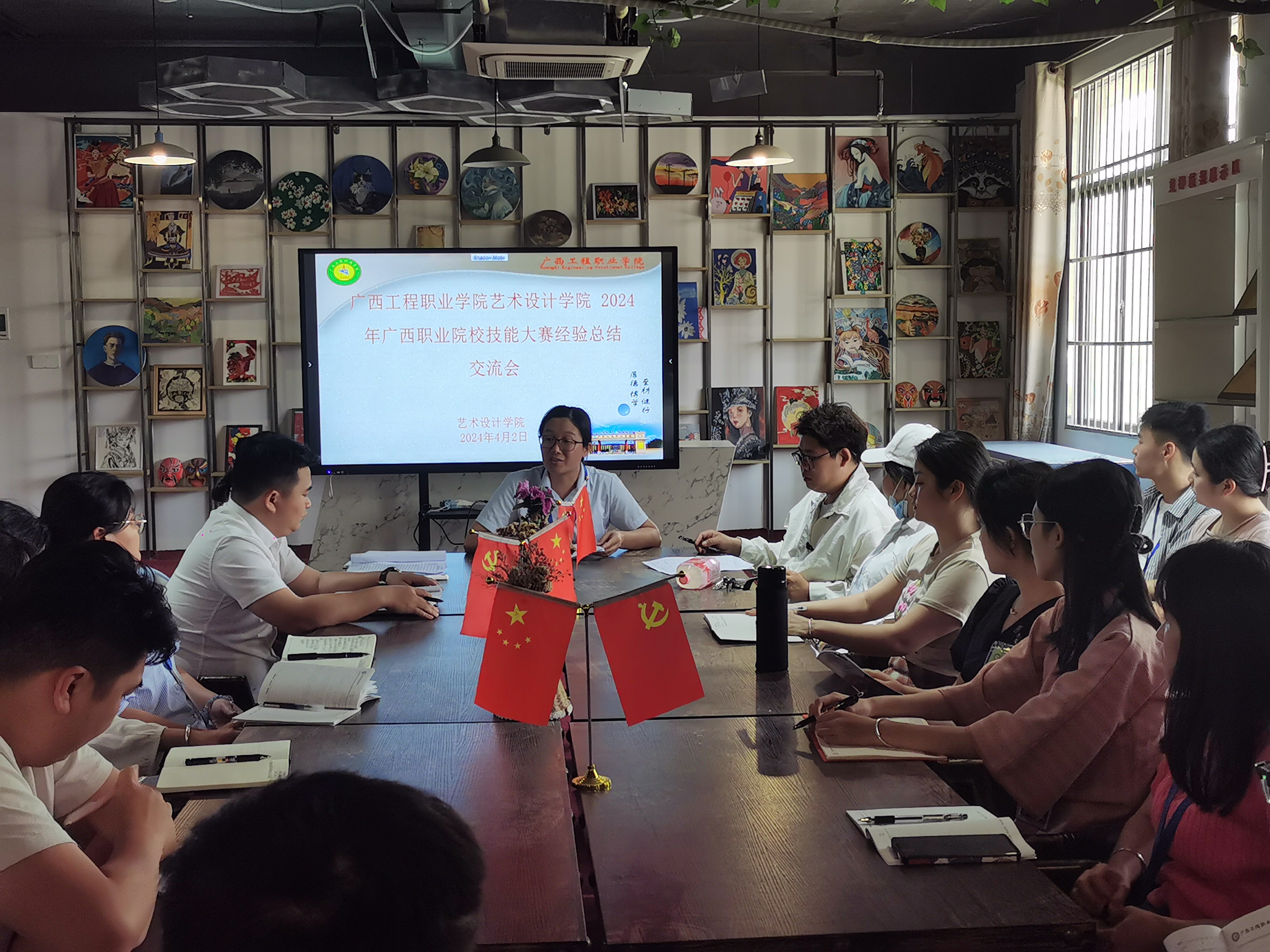 2024年4月2日下午,藝術(shù)設(shè)計學院在學院一樓黨員閱讀區(qū)召開了2024年廣西職業(yè)院校技能大賽經(jīng)驗交流會,學院全體教師參加會議,會議由學院黨支部書記、院長覃鳳姣主持。