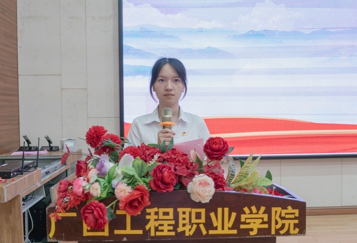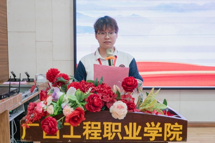 第九屆學(xué)生會宣傳部吳明峰宣讀《廣西工程職業(yè)學(xué)院2024年學(xué)生代表大會提案工作委員會關(guān)于提案工作的報告》