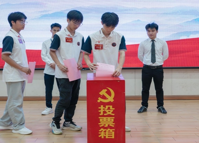 學(xué)生代表們投票選舉第十屆學(xué)生會主席團成員