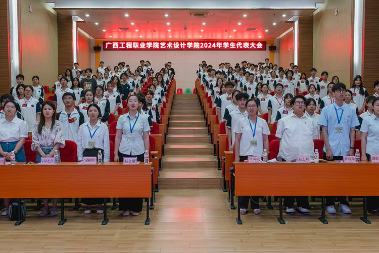 在莊嚴(yán)的國歌中,藝術(shù)設(shè)計學(xué)院2024年學(xué)生代表大會正式拉開帷幕