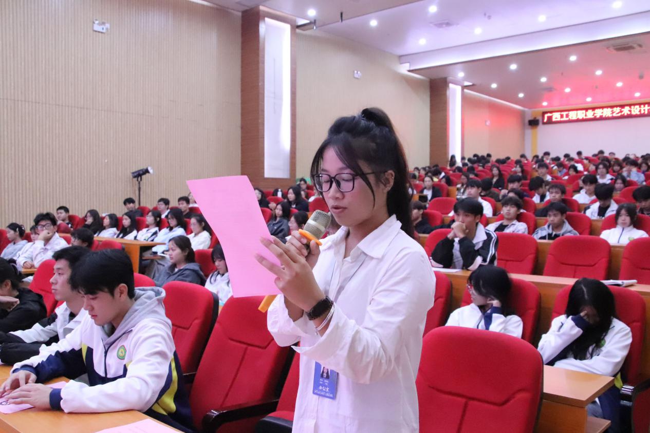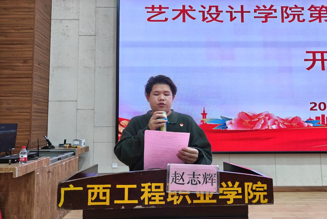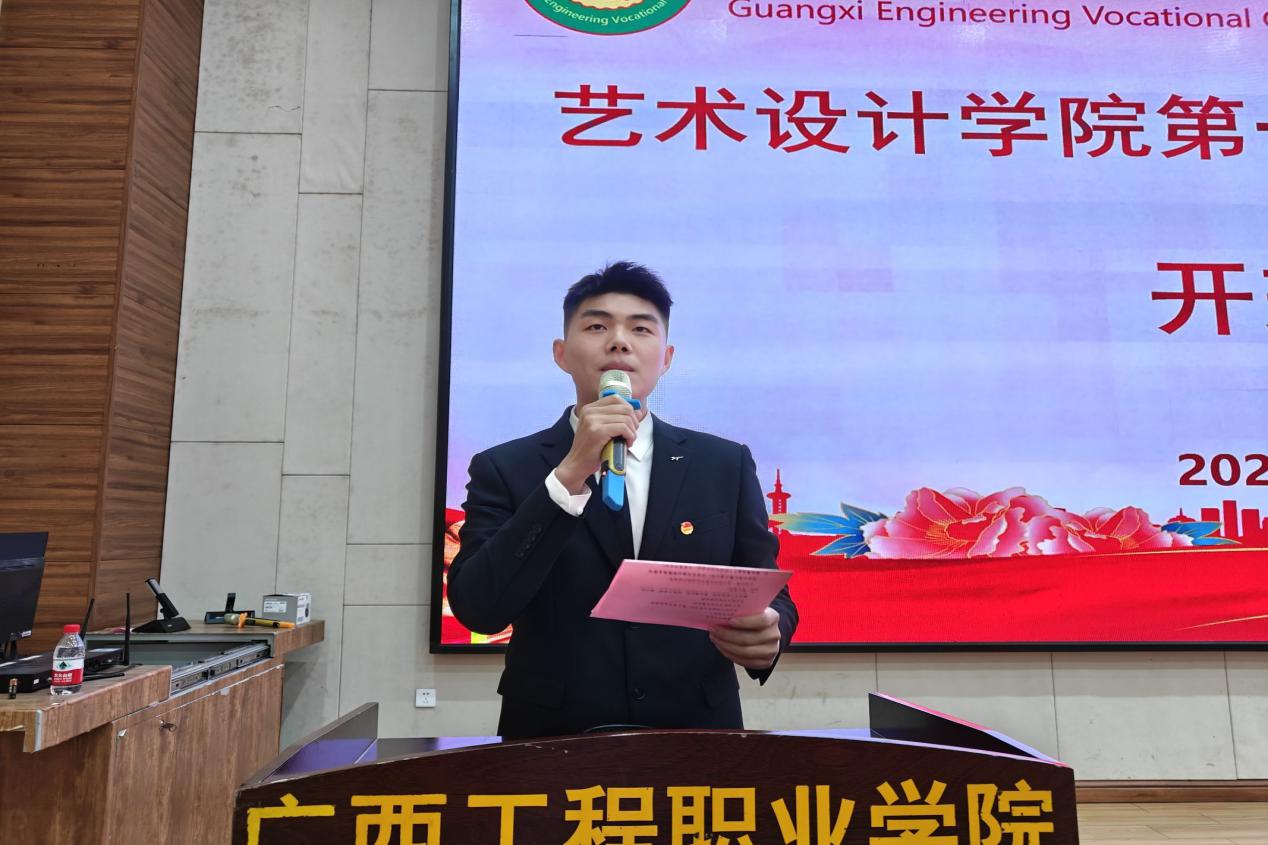 藝術(shù)設計學院黨支部書記、院長覃鳳姣,黨支部副書記趙志輝,辦公室主任趙金甜,輔導員盧妍妍老師、曹遠翔老師、陸倩吉老師、黃玉瑩老師、梁宇老師出席了開班典禮,學院全體學生干部參加了開班典禮,典禮由學生會干部吳明峰同學主持。