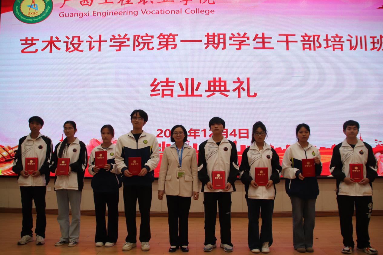 藝術(shù)設計學院黨支部書記、院長覃鳳姣為學生干部頒發(fā)結(jié)業(yè)證書
