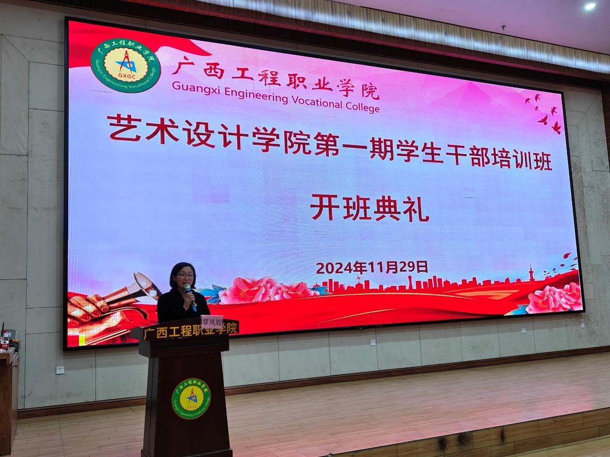 藝術(shù)設計學院黨支部書記、院長覃鳳姣作動員講話,她強調(diào)了此次培訓的重要性和意義,指出學生干部作為學生管理工作的中堅力量,應該具備高度的責任感和使命感,希望通過培訓不斷提升學生干部的領導力和執(zhí)行力,為學院的發(fā)展貢獻自己的力量。