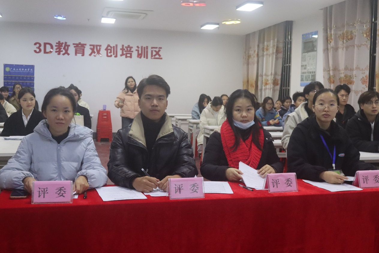本次初選賽評(píng)委由藝術(shù)設(shè)計(jì)學(xué)院黨支部副書記趙志輝、藝術(shù)設(shè)計(jì)學(xué)院辦公室主任趙金甜,藝術(shù)設(shè)計(jì)學(xué)院蘇媚老師、梁宇老師、黃玉瑩老師、廖乃龍老師、陸蘭老師、黃艷娟老師等老師擔(dān)任。