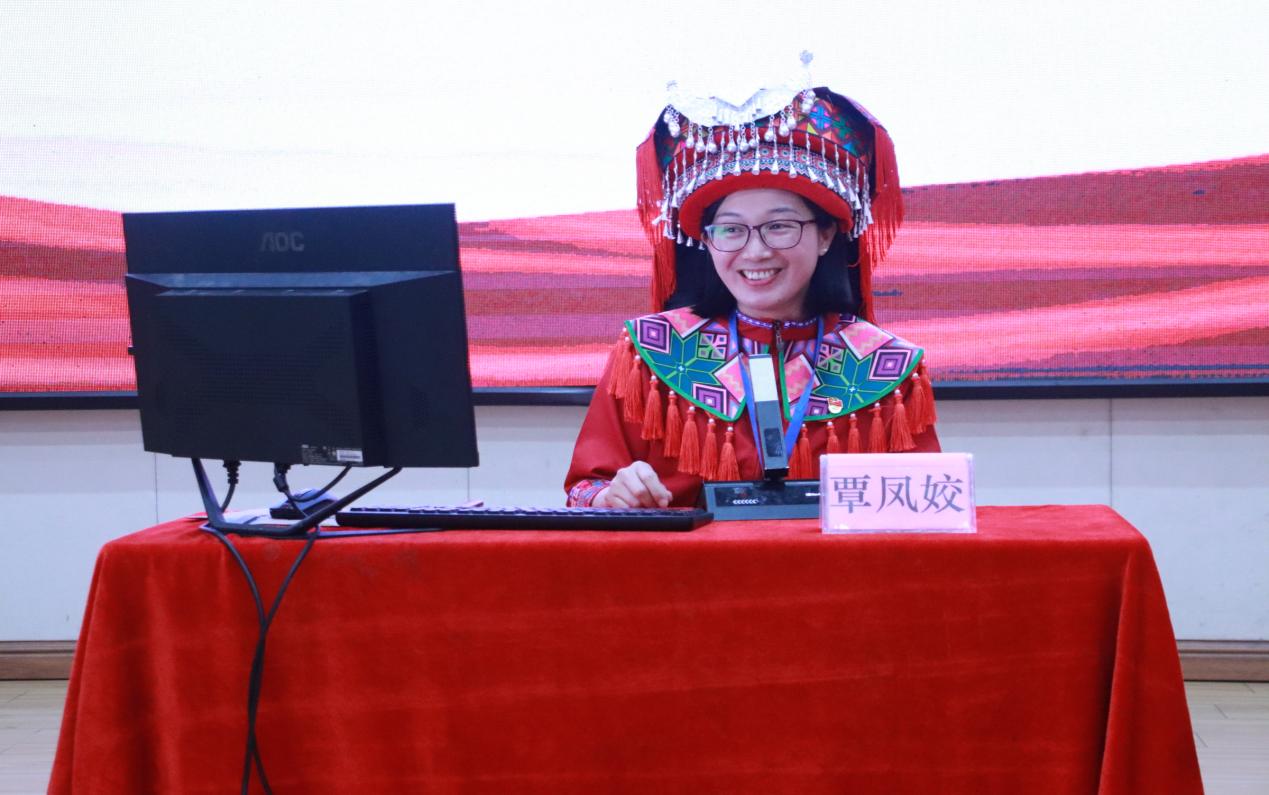 隨后,藝術(shù)設(shè)計(jì)學(xué)院黨支部黃麗勤同志帶領(lǐng)大家走進(jìn)苗嶺,通過(guò)銀飾工藝和蘆笙歌舞的展示,展現(xiàn)了苗族文化的絢麗多彩。她表示:“苗族文化承載著對(duì)自然的敬畏和對(duì)生活的熱愛(ài),是中華民族共同的精神財(cái)富。”
