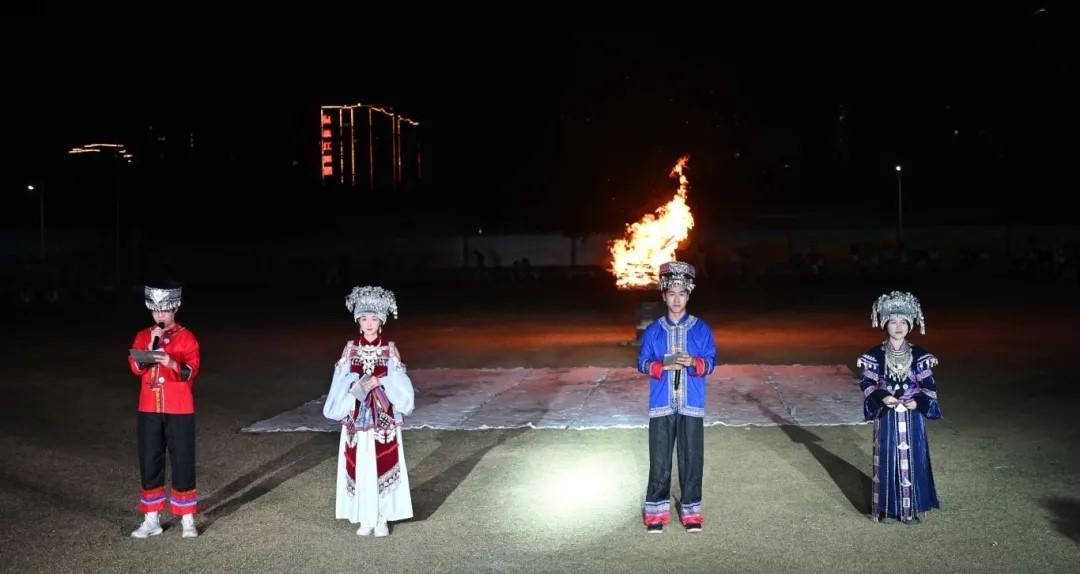 本次篝火晚會(huì)精心編排多個(gè)精彩節(jié)目,涵蓋山歌串燒、民族舞蹈、非遺表演等多種形式。從 “山歌繞梁·余韻未歇” 的悠揚(yáng)歌聲,到 “三月春風(fēng)拂人間·民族文化永傳承” 的多彩演繹,再到 “火焰不息·狂歡不止” 的熱烈氛圍,將全方位呈現(xiàn)民族文化魅力,為師生們帶來(lái)一場(chǎng)令人驚艷的視聽(tīng)盛宴。
