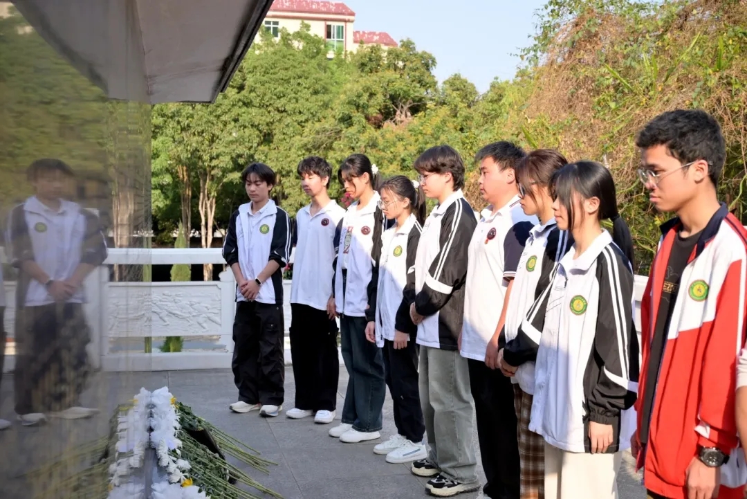 全體黨員在莊嚴(yán)肅穆的烈士紀(jì)念碑前整齊列隊,舉行緬懷儀式。師生代表向革命先烈敬獻(xiàn)花籃,全體默哀致敬,表達(dá)對英烈的深切哀思與崇高敬意。隨后,同志們依次走上瞻仰臺,為烈士獻(xiàn)上小白花,寄托緬懷之情。