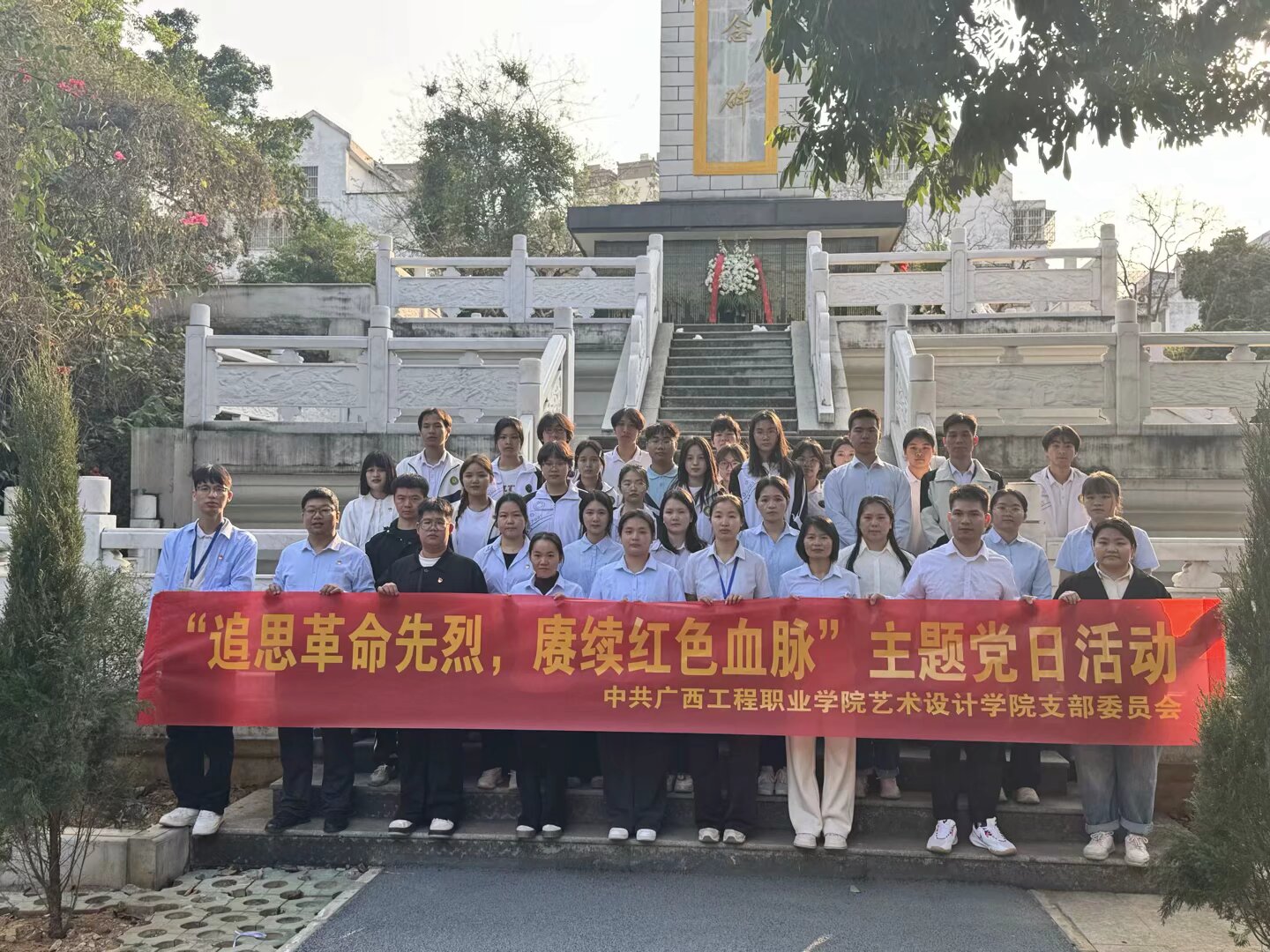 為緬懷革命先烈、弘揚革命精神,深化愛國主義教育,2025年4月2日下午,藝術(shù)設(shè)計學(xué)院黨支部組織全體黨員赴平果市烈士陵園開展“追思革命先烈,賡續(xù)紅色血脈”主題黨日活動。活動通過追思先烈事跡,強(qiáng)化師生理想信念,厚植愛黨愛國情懷,激勵師生以實際行動賡續(xù)紅色血脈。
