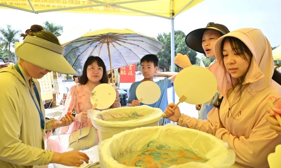 “非遺漆扇”體驗(yàn)區(qū),一把把精致的漆扇在師生們的手中逐漸成形,展現(xiàn)了非遺技藝的獨(dú)特韻味。