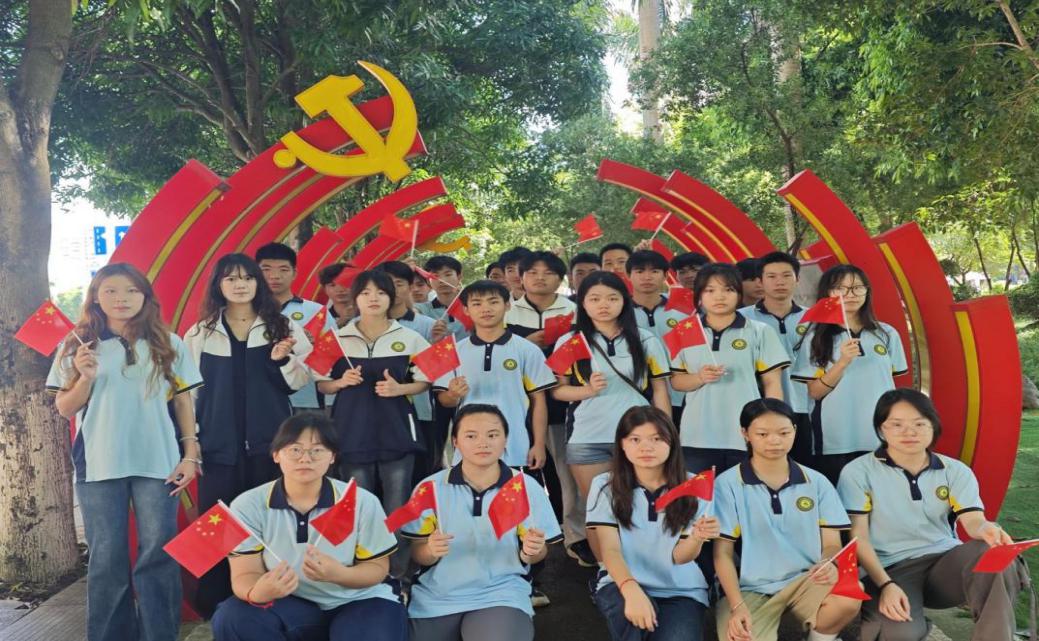 圖為2024級美容美體藝術1班與平果市紅色文化地標合影