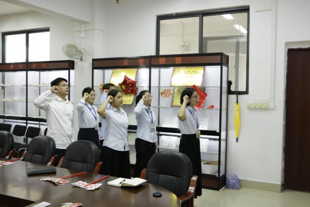 圖為黨支部書記覃鳳姣同志帶領新黨員教師宣誓