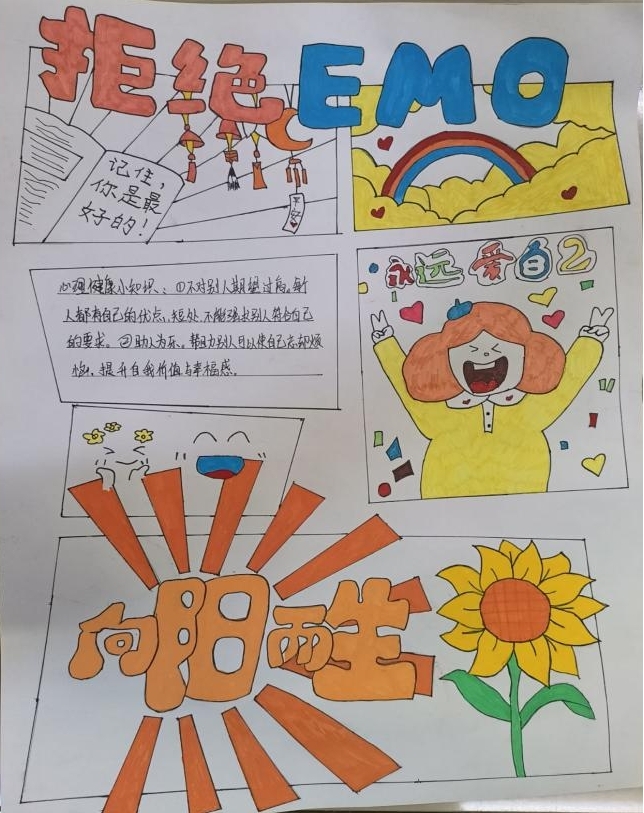 心理繪畫不僅為同學們搭建了展現(xiàn)創(chuàng)意與才華的舞臺,更通過藝術創(chuàng)作與知識探索的深度融合,有效激發(fā)了大家主動學習心理健康知識的熱情,提升了信息整合與藝術表達能力,有力推動了心理健康知識的普及,營造出理解、關愛與成長的良好氛圍,對積極向上的和諧校園起到重要促進作用,讓心靈之花在校園的每一處悄然綻放。