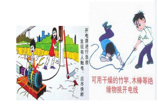 1.盡快讓觸電人員脫離電源。應(yīng)立即關(guān)閉電源或拔掉電源插頭。若無法及時找到或斷開電源,可用干燥的木棒、竹竿等絕緣物挑開電線;不得直接觸碰帶電物體和觸電者的身體。