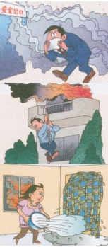 (2)禁止通過電梯逃生,如樓梯已經(jīng)燒斷,則可通過在固定的物體上栓繩子、搓成繩的被單等逃生,為防止?jié)鉄焼苋胫舷?,可采用濕毛巾、口罩遮鼻,匍匐撤離。
