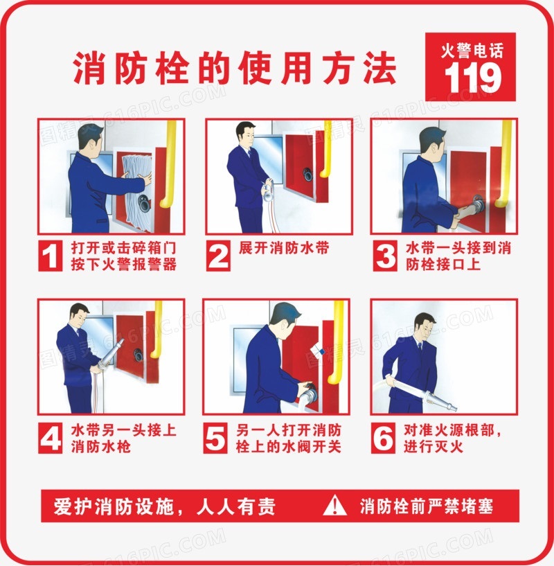 (3)另一人接好水帶和閥門口?! ?br />(4)逆時針打開閥門水噴出即可。注:電起火要確定切斷電源。