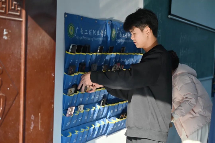 圖為同學(xué)們按考試要求將手機(jī)放至手機(jī)袋