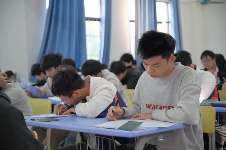 秩序井然的考場(chǎng)內(nèi),同學(xué)們沉著冷靜,周密思考,奮筆疾書。鯤鵬之志,盡在揮毫指間彰顯!