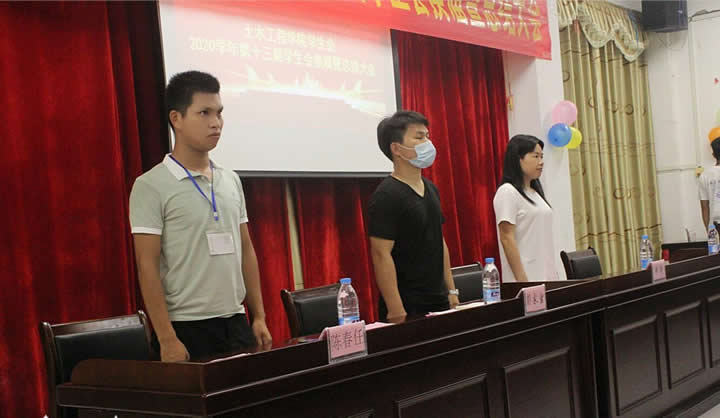 2020年6月30日下午19:30。土木工程學院學生會第十三屆換屆大會在辦公大樓4樓會議室舉行。出席本次換屆大會的領(lǐng)導和嘉賓有:林萌副校長、彭家官副院長、陳春任老師、謝安妮老師、土木工程學院全體輔導員和校十大社團及各二級學院代表,本次大會由趙裕有主持。大會共有五個議程。