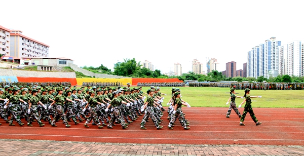 學(xué)校副校長羅艷妮作軍訓(xùn)總結(jié)講話,她代表學(xué)校領(lǐng)導(dǎo)向圓滿完成參訓(xùn)任務(wù)的全體學(xué)生和在軍訓(xùn)中受到表彰的先進集體和個人表示熱烈的祝賀!向付出辛勤汗水的承訓(xùn)教官、輔導(dǎo)員及其他工作人員表示衷心的感謝!在過去兩周的軍訓(xùn)中,同學(xué)們不怕風雨、烈日,不怕苦,不怕累,戰(zhàn)勝困難,堅持訓(xùn)練,一切行動聽指揮,增強了國防意識、磨練了意志品質(zhì)、加強了組織紀律性,展現(xiàn)了現(xiàn)代大學(xué)生的精神風貌,向?qū)W校遞交了第一份令人滿意的答卷,達到了軍訓(xùn)的預(yù)期目的。