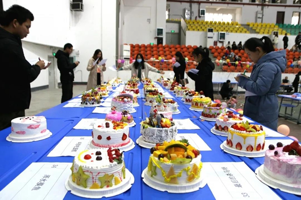 你思我想,大家磨刀霍霍,齊上陣。比賽中,各個團隊充分發(fā)揮團隊優(yōu)勢,以豐富的想象,巧妙的構思和足夠的耐心,合理利用蛋糕制作材料,設計出風格多樣、造型精美、構思新穎的美味蛋糕,創(chuàng)意十足,現(xiàn)場氣氛分外熱鬧。
