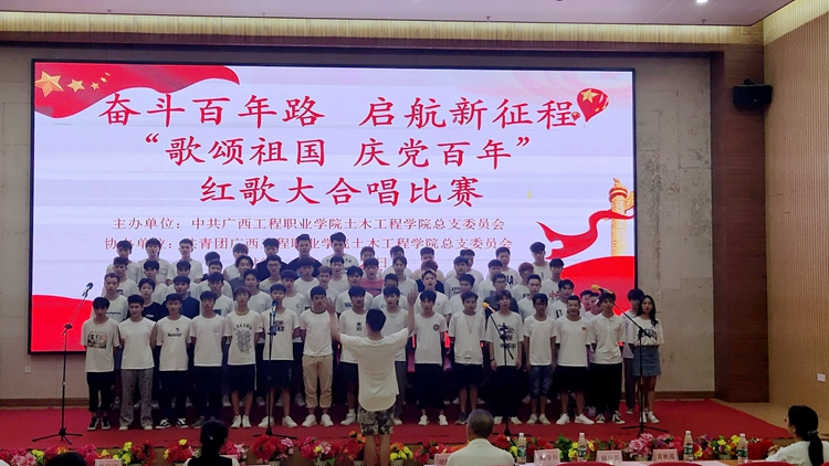 為慶祝建黨100周年,弘揚(yáng)愛國精神,增強(qiáng)班級聚力,豐富校園文化生活,土木工程學(xué)院黨總支于2021年5月27日下午在圖文信息大樓一樓會議廳舉行“歌頌祖國,慶黨百年”紅歌大合唱比賽。學(xué)校黨委副書記、副校長胡細(xì)木教授,土木工程學(xué)院黨總支書記、副院長李麗詩,分團(tuán)委書記陳春任及各班輔導(dǎo)員應(yīng)邀擔(dān)當(dāng)了本次活動的評委。