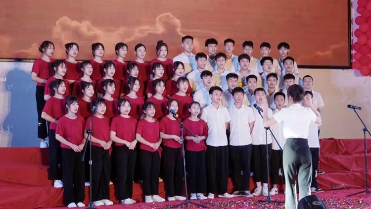 來自各二級學(xué)院的十五支隊伍演唱的紅色曲目慷慨激昂、經(jīng)久不衰,青年學(xué)子用歌聲表達了對黨真摯的祝福。《我的中國心》、《保衛(wèi)黃河》、《我和我的祖國》、《中國人民解放軍軍歌》、《唱支山歌給黨聽》、《強國一代有我在》等經(jīng)典歌曲鏗鏘有力、飽含深情,唱出了廣大青年對中國共產(chǎn)黨的衷心擁護和聽黨話、跟黨走的堅定信念,唱出了師生為實現(xiàn)中華民族偉大復(fù)興砥礪前行的決心和氣魄。